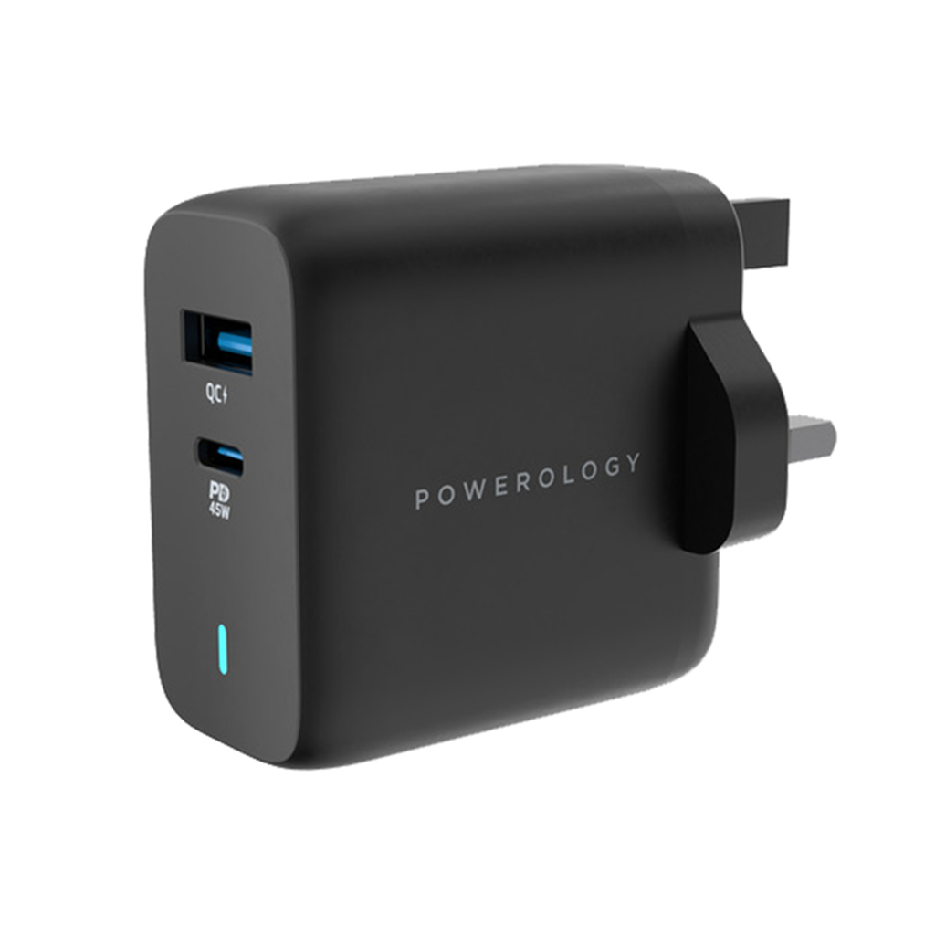 Powerology Ultra-Quick GaN Charger with 45W PD & 18W USB-A QC PWCUQC004