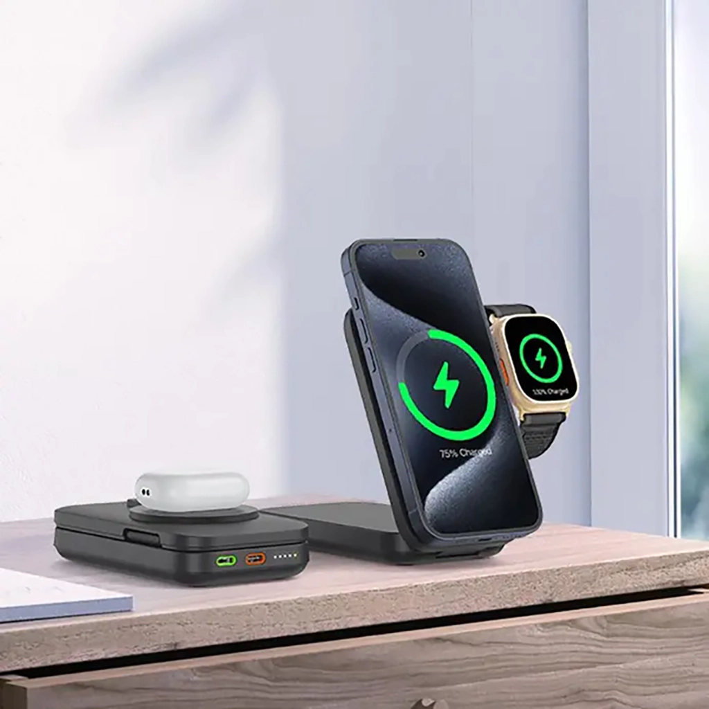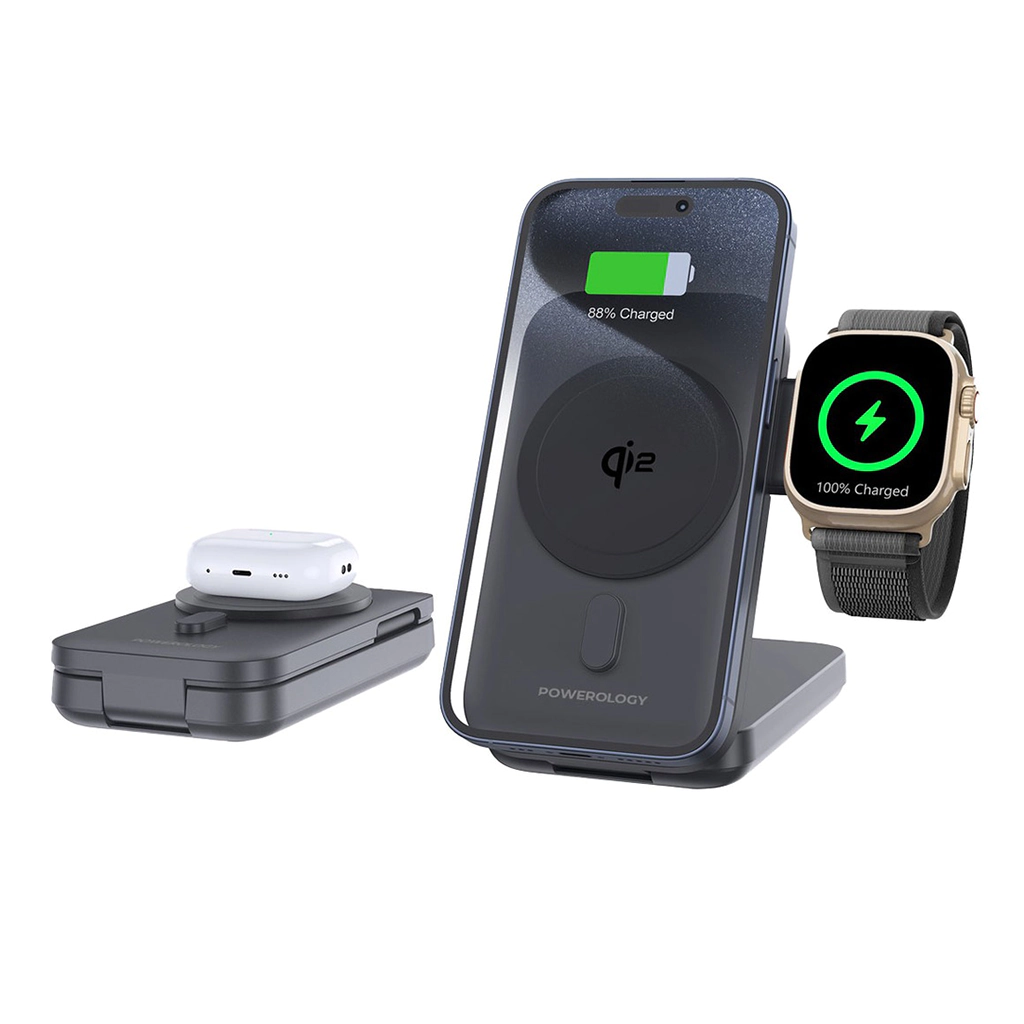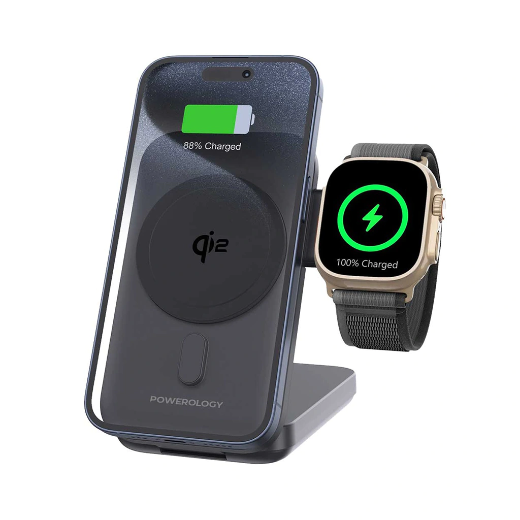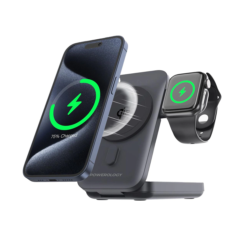 Powerology Qi2 15W MagSafe Folding Stand 20W PD 10000 mAh Power Bank & Watch Charger PPBCHA35