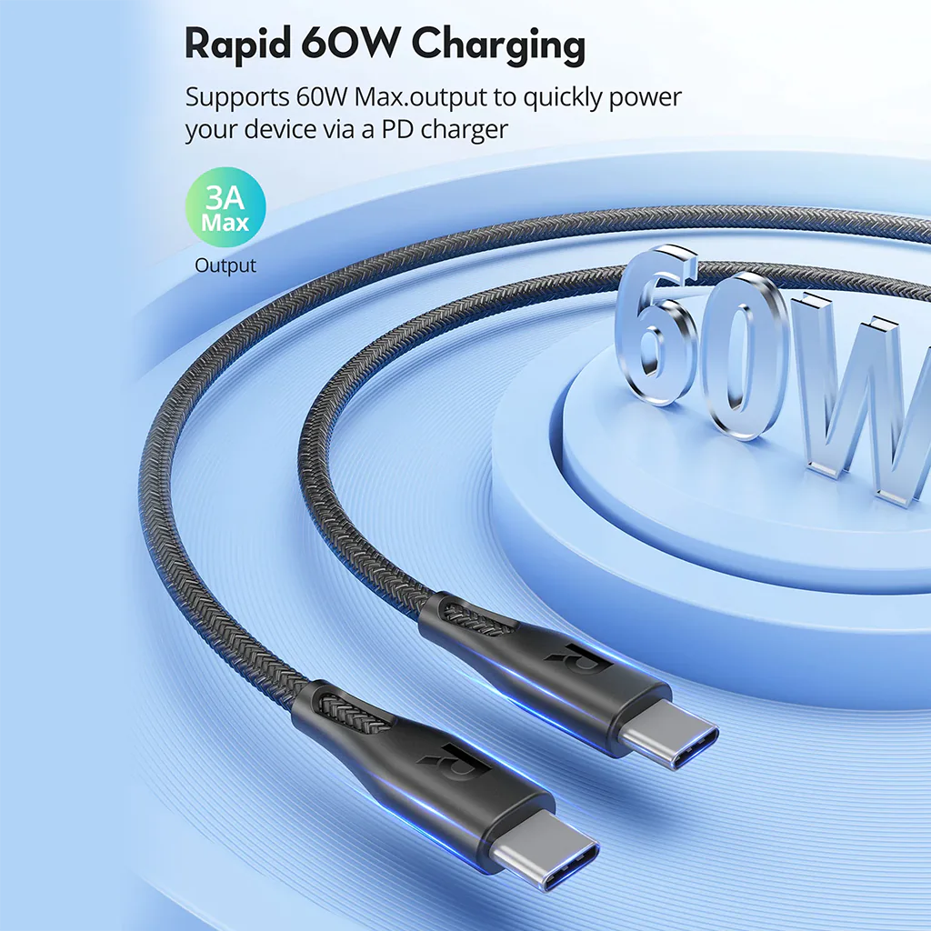 RAVPOWER Nylon Braid USB-C to USB-C 60W 1.2M Cable RP-CB1029