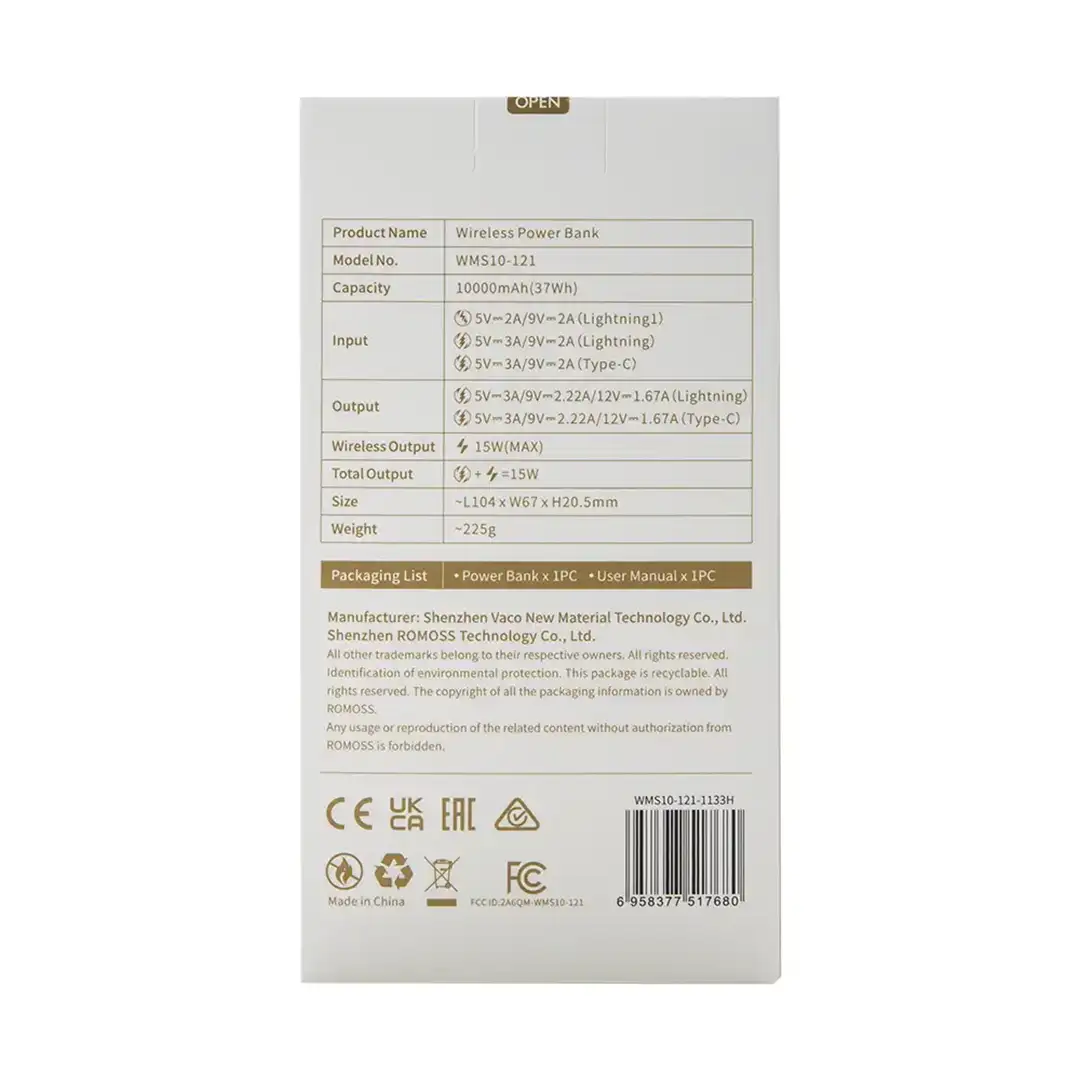 ROMOSS MagAir 30W PD 3 Output Wireless MagSafe Power Bank 10000mAh WMS10-121