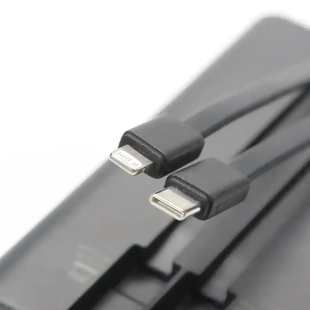 - دارای 4 خروجی همزمان (کابل لایتنینگ متصل + کابل تایپ سی متصل + پورت تایپ سی + پورت USB-A)