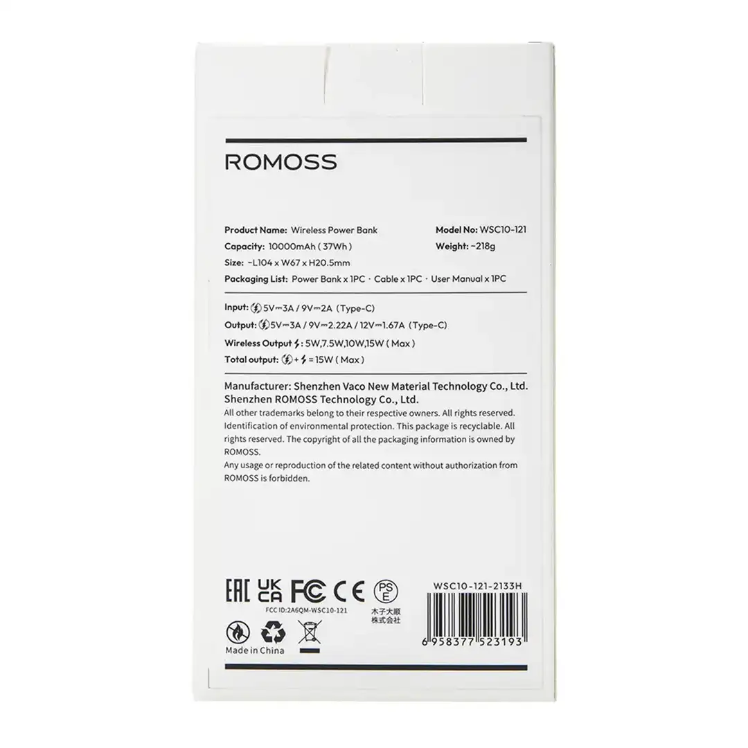 ROMOSS MagAir 20W PD 2 Output Wireless MagSafe Power Bank 10000mAh WSC10-121