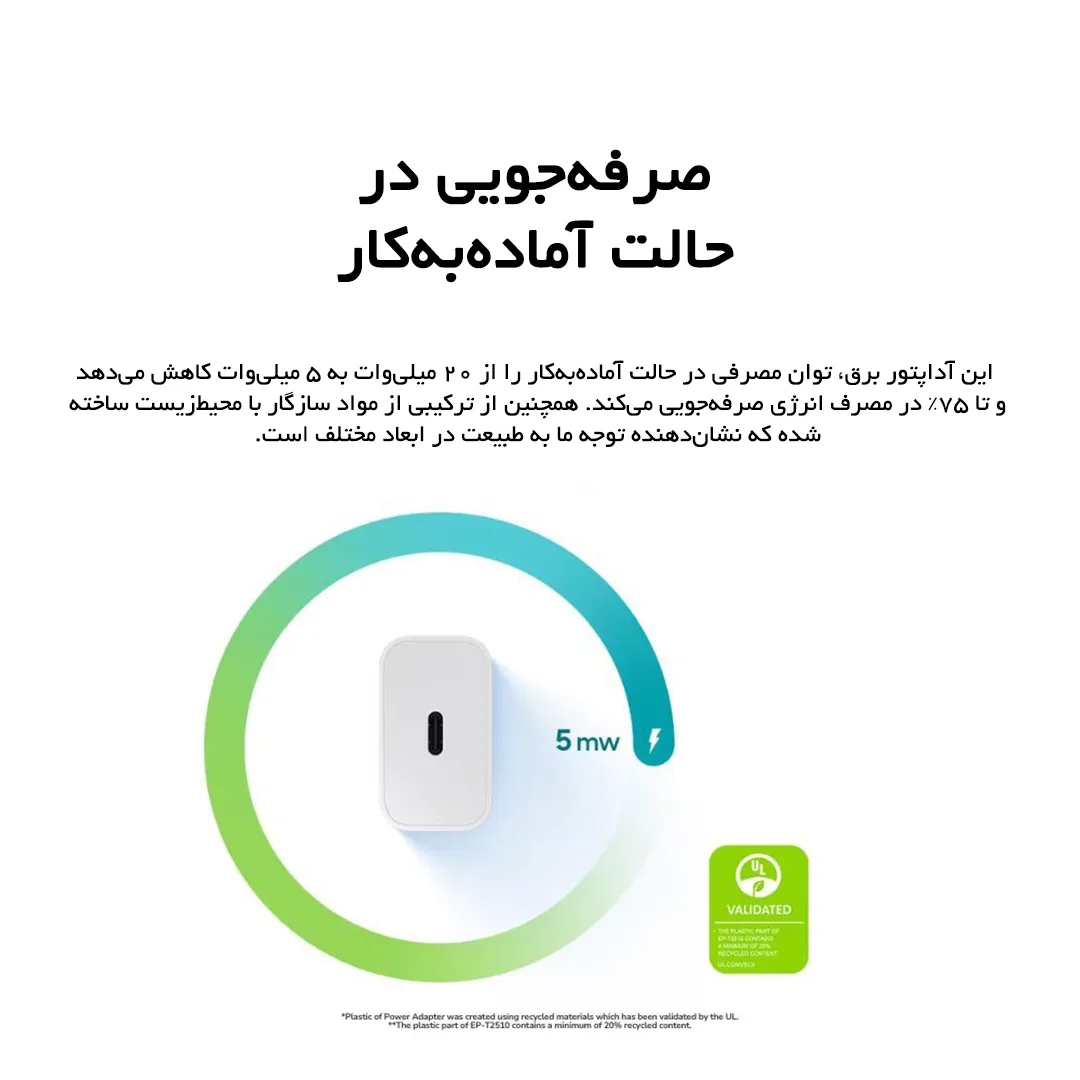 | ویژگی تراشه هوشمند | مصرف کم برق در حال آماده به کار Low Standby، تشخیص ولتاژ و جریان مورد نیاز دستگاه |
