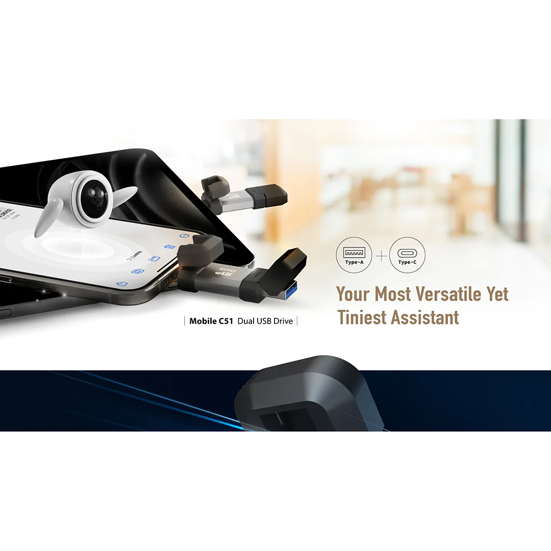 Silicon Power Dual USB Drive Type-C +Type-A Mobile C51 128GB Flash Drive