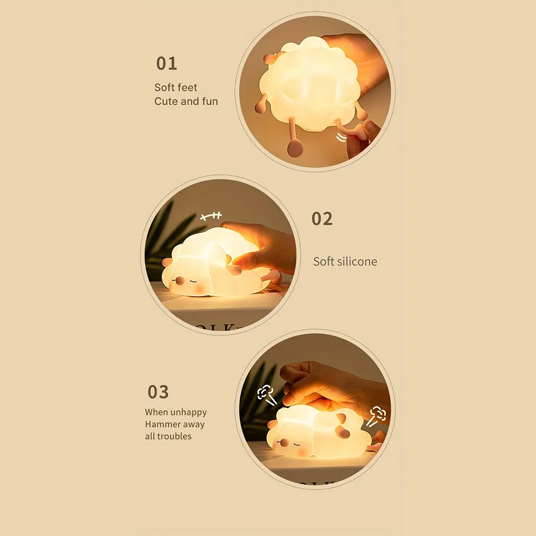 Squishy Silicone Sleeping Sheep LED Night Light - K-1156