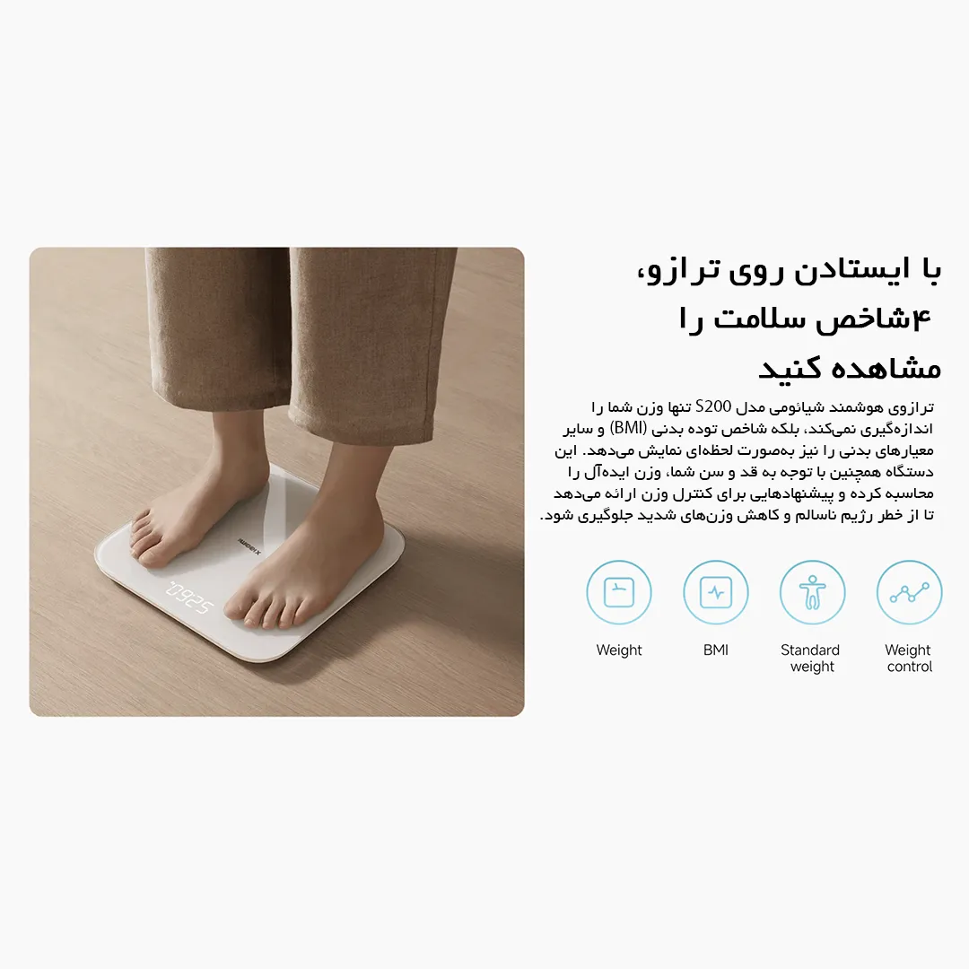 - قابلیت اندازه گیری 4 شاخص سلامتی: وزن، شاخص توده بدنی (BMI)، وزن استاندارد و پیشنهادات کنترل وزن