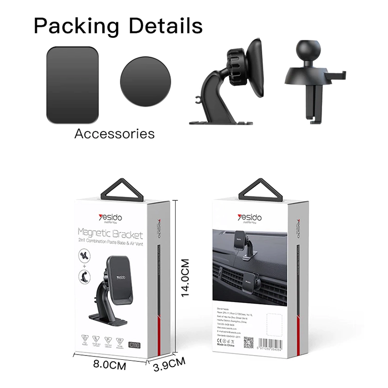 Yesido C110 Magnetic Bracket 2 in 1 Paste Base & Air Vent Mobile Car Holder