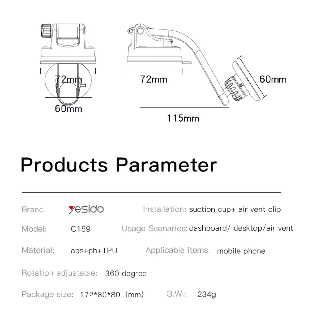 Yesido C159 Suction Cup & Air Vent Magnetic Mobile Car Dashboard Holder