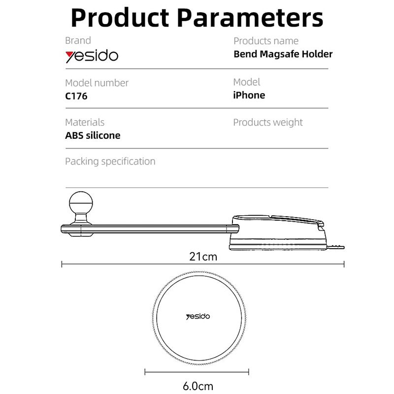 Yesido C176 Magnet MagSafe iPhone Apple Suction Cup Long Arm Adjustable Mobile Car Dashboard Holder