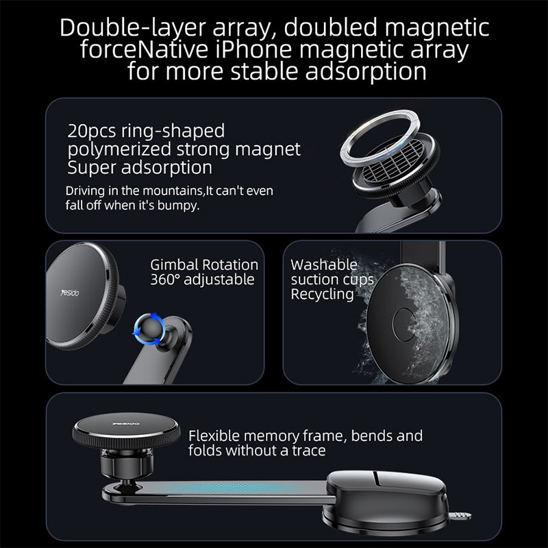 پایه مگ سیف شیشه و داشبوردی خودرو یسیدو مدل Yesido MagSafe Magnet C176