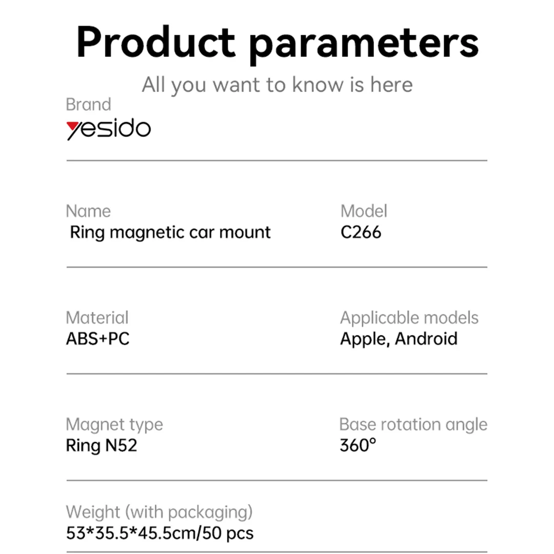 Yesido C266 Suction Cup & Windshield Magnetic Mobile Car Dashboard Holder