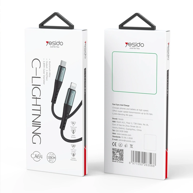 کابل تایپسی به لایتنینگ یسیدو مدل Yesido C-Lightning CA64 طول 1.2 متر
