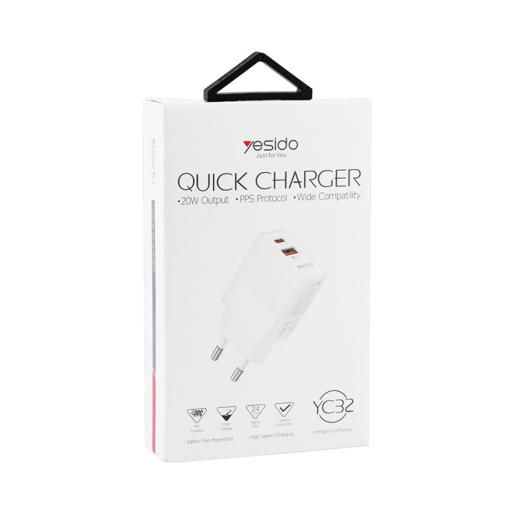 Yesido Quick Charger 20W USB-C PPS & USB-A QC 2-Port YC32