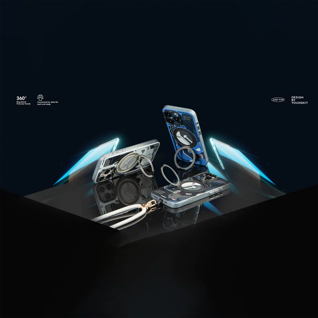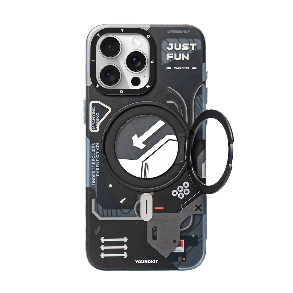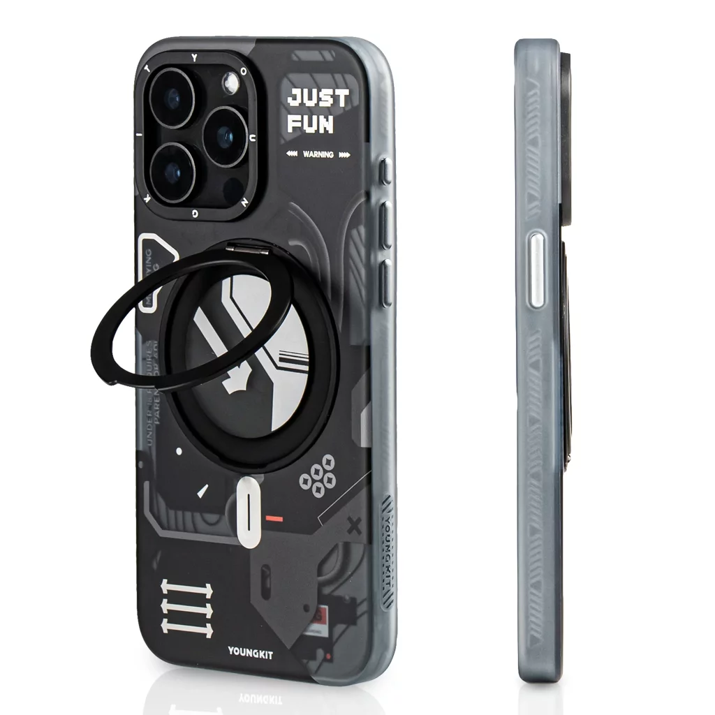 YOUNGKIT CyberPunk 360° Rotation Ring Stand Magsafe Black Case for iPhone 15 Pro Max Original