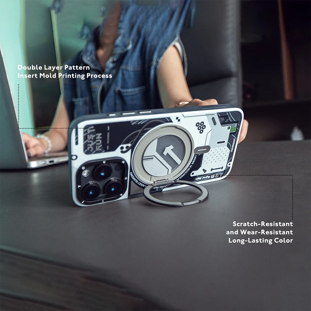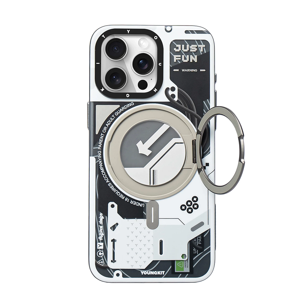 YOUNGKIT CyberPunk 360° Rotation Ring Stand Magsafe White Case for iPhone 15 Pro Max Original