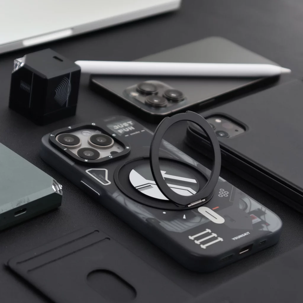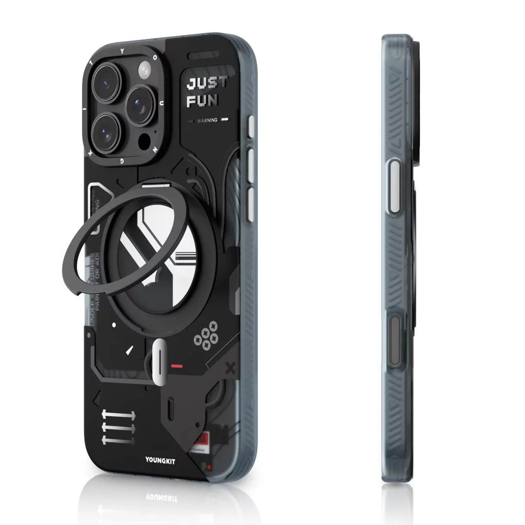 YOUNGKIT CyberPunk 360° Spin Rotation Ring Stand Magsafe Case for iPhone 16 Pro Original
