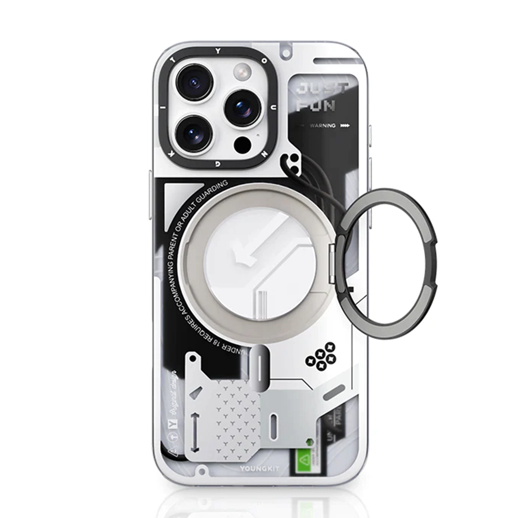 YOUNGKIT CyberPunk 360° Spin Rotation Ring Stand Magsafe White Case for iPhone 16 Pro Max Original