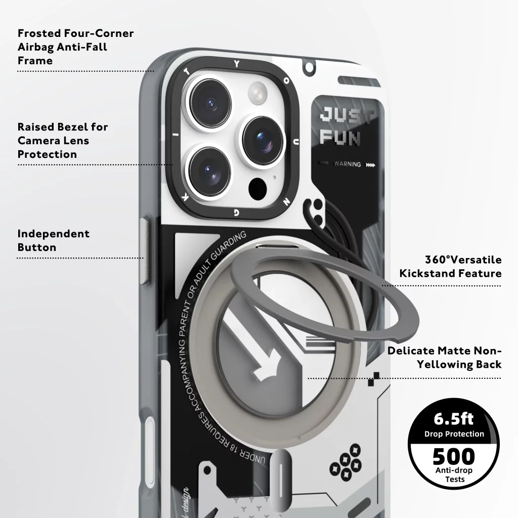 کاور مگ سیف استند (هولدر) سفید یانگ کیت مدل CyberPunk 360° Spin MagSafe مناسب آیفون 16 پرومکس اپل iPhone 16 Pro Max