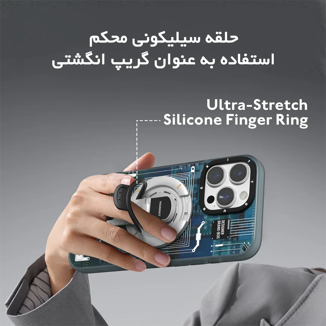 - دارای حلقه سیلیکونی جهت گرفتن گوشی و استفاده به عنوان گریپ دستی