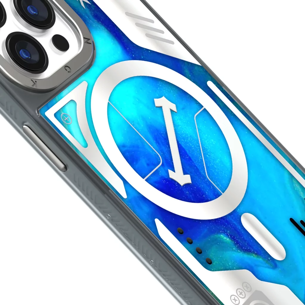 YOUNGKIT Galactic Series Cyberpunk Blue Luminous Quicksand MagSafe Case for iPhone 15 Pro Max Original