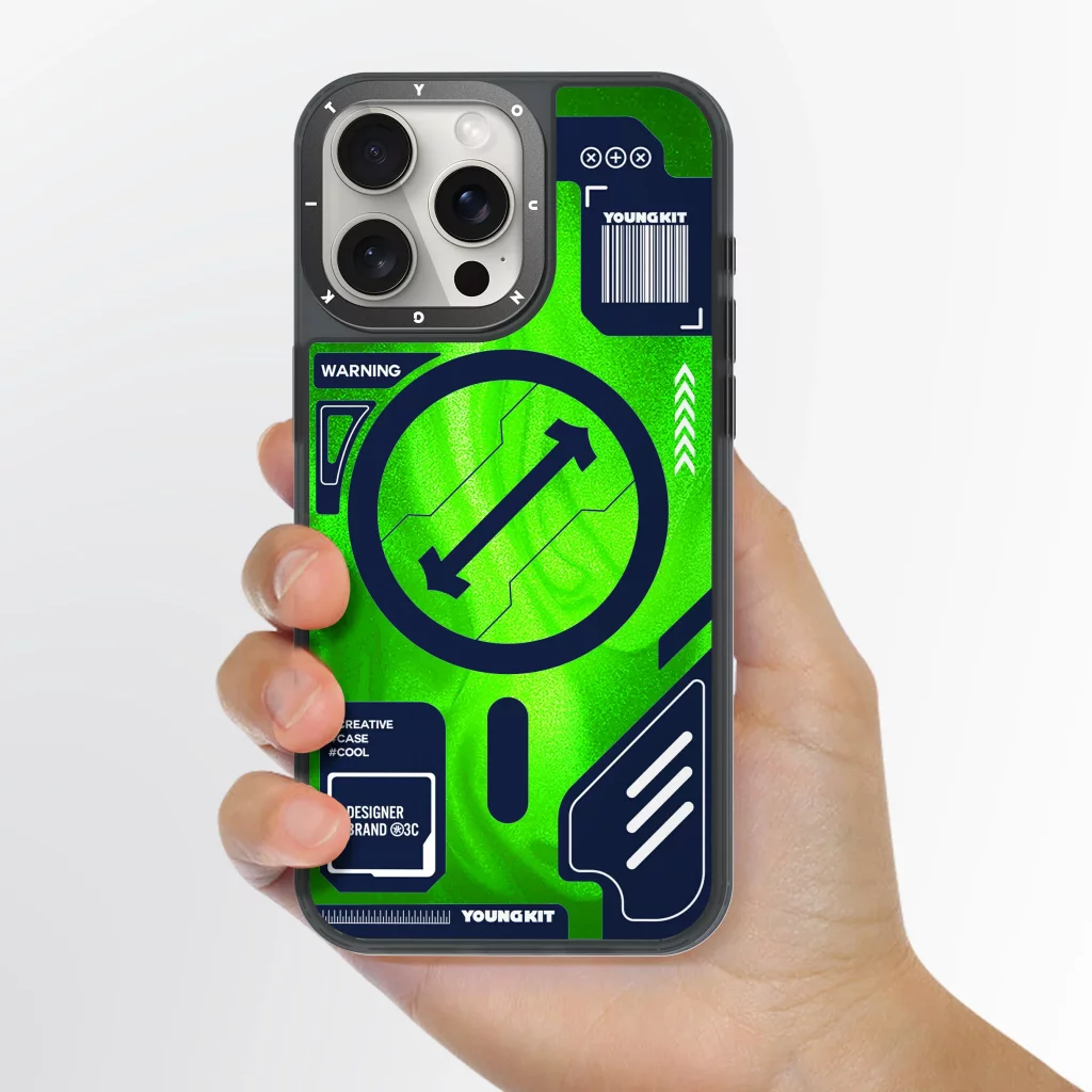 YOUNGKIT Galactic Series Cyberpunk Green Luminous Quicksand MagSafe Case for iPhone 15 Pro Max Original