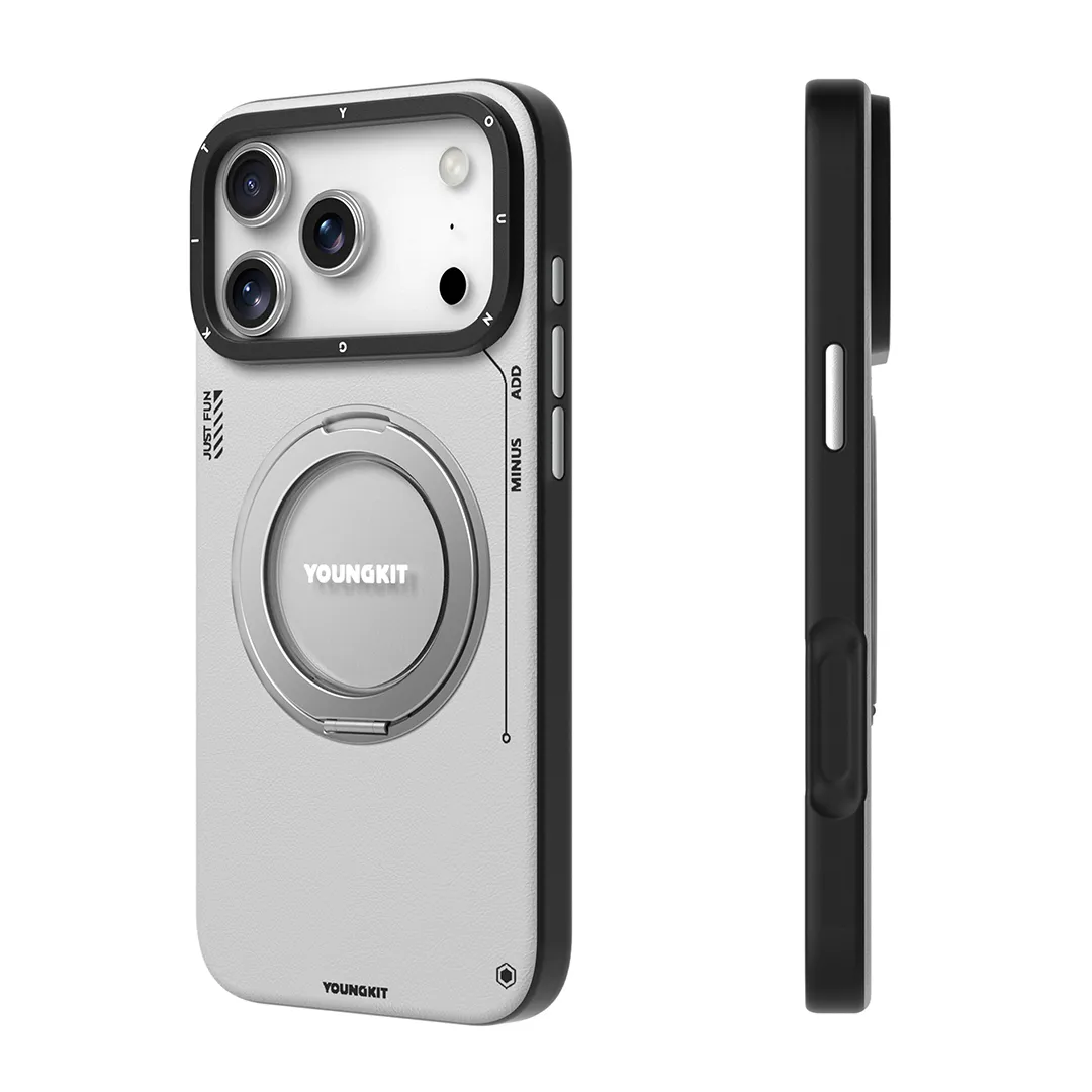 YOUNGKIT Leather 360° Spin Rotation Ring Stand MagSafe Case for iPhone 17 Pro Original