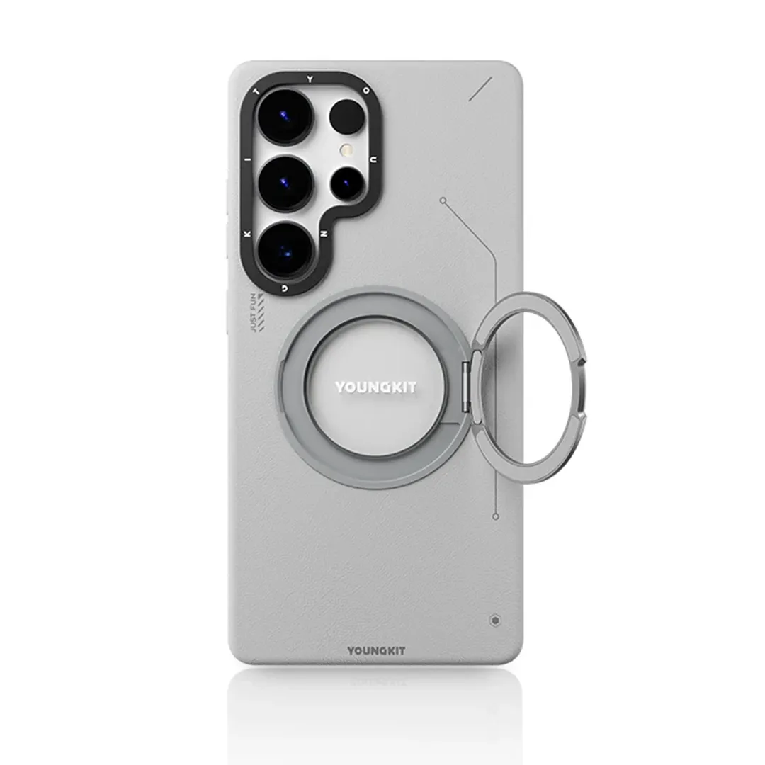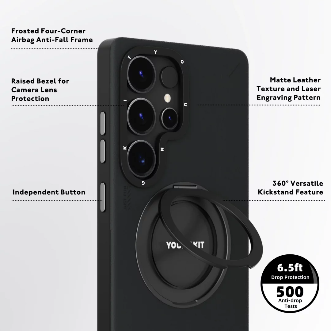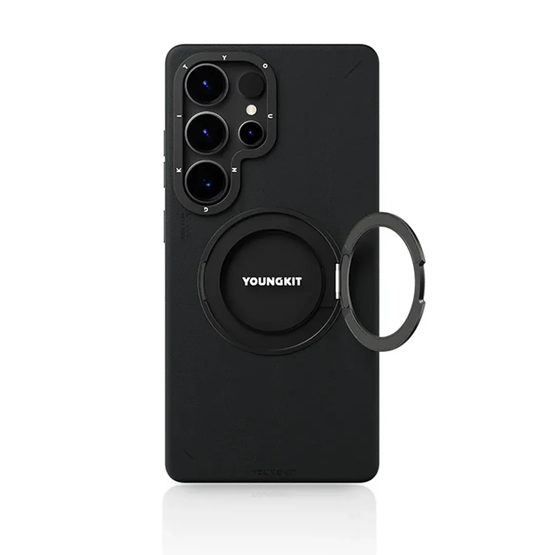 YOUNGKIT Leather 360° Spin Rotation Ring Stand MagSafe Case For Samsung S25 Ultra Original