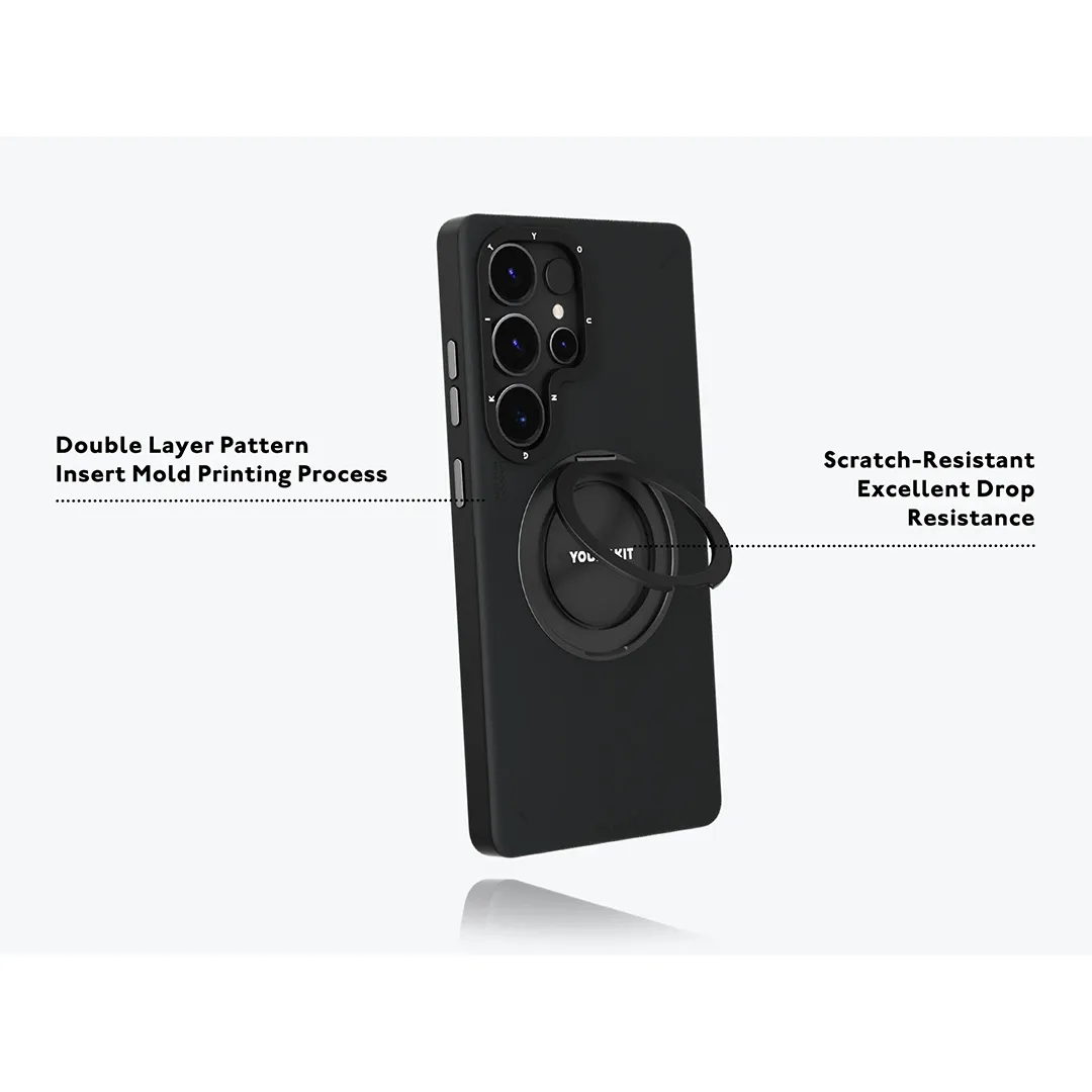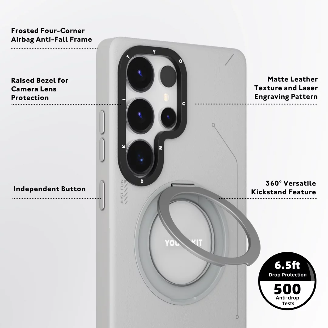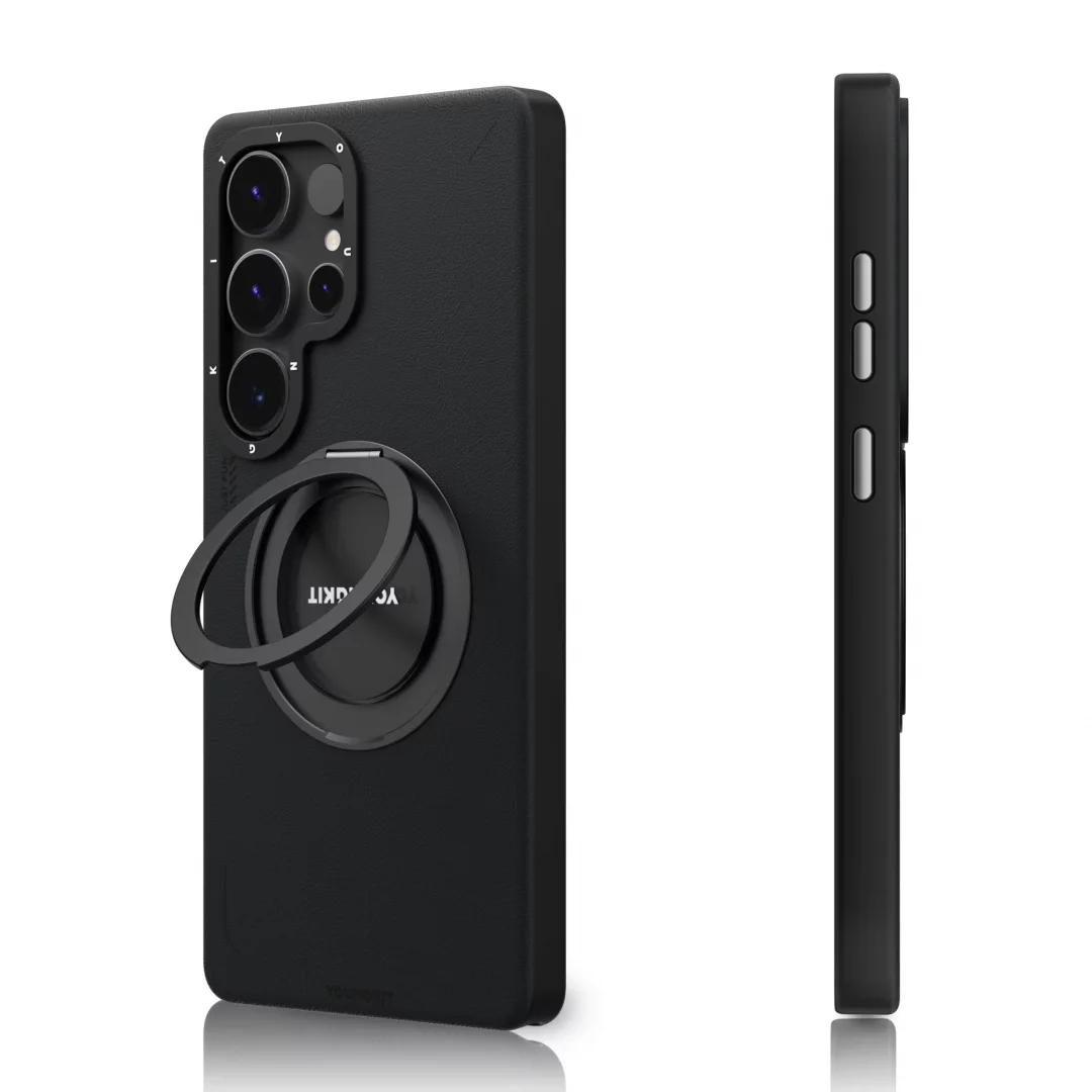 YOUNGKIT Leather 360° Spin Rotation Ring Stand MagSafe Case For Samsung S25 Ultra Original