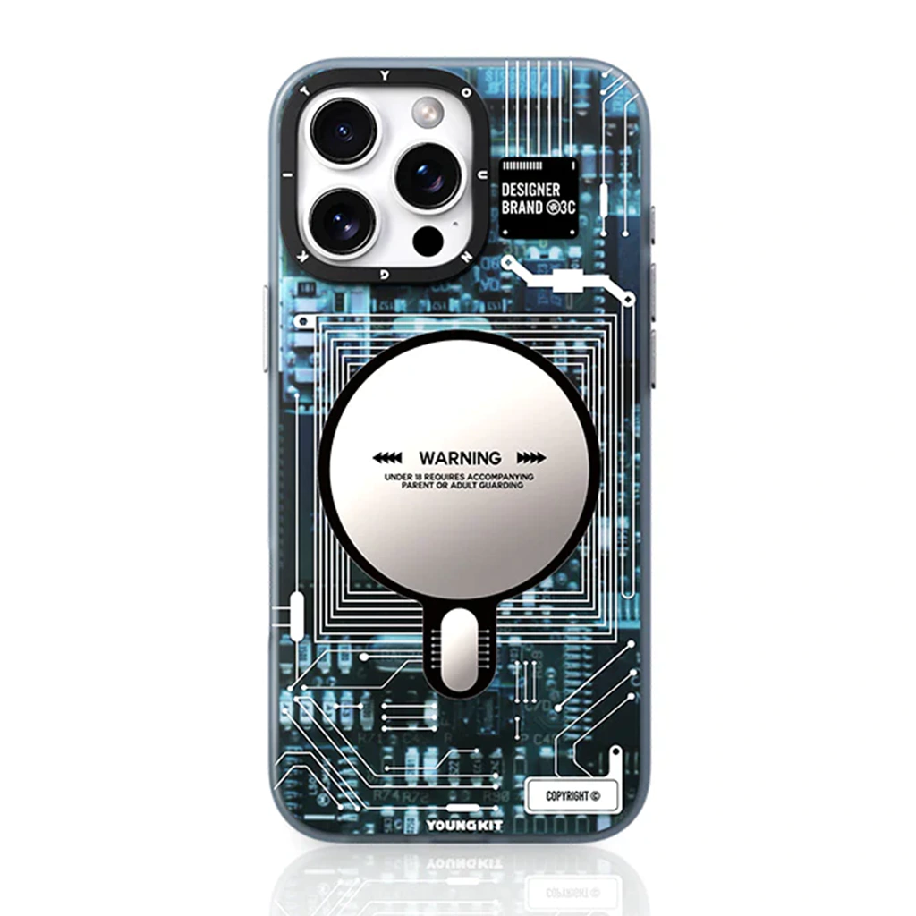 YOUNGKIT Technology Series Futuristic Blue Circuit Board Magsafe Case for iPhone 15 Pro Max Original