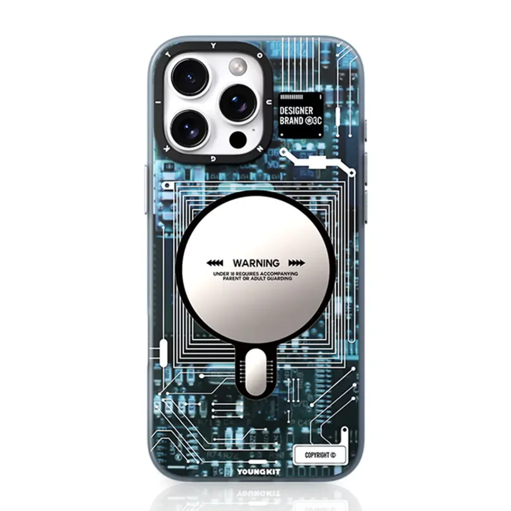 YOUNGKIT Technology Series Futuristic Blue Circuit Board MagSafe Case for iPhone 16 Pro Max Original