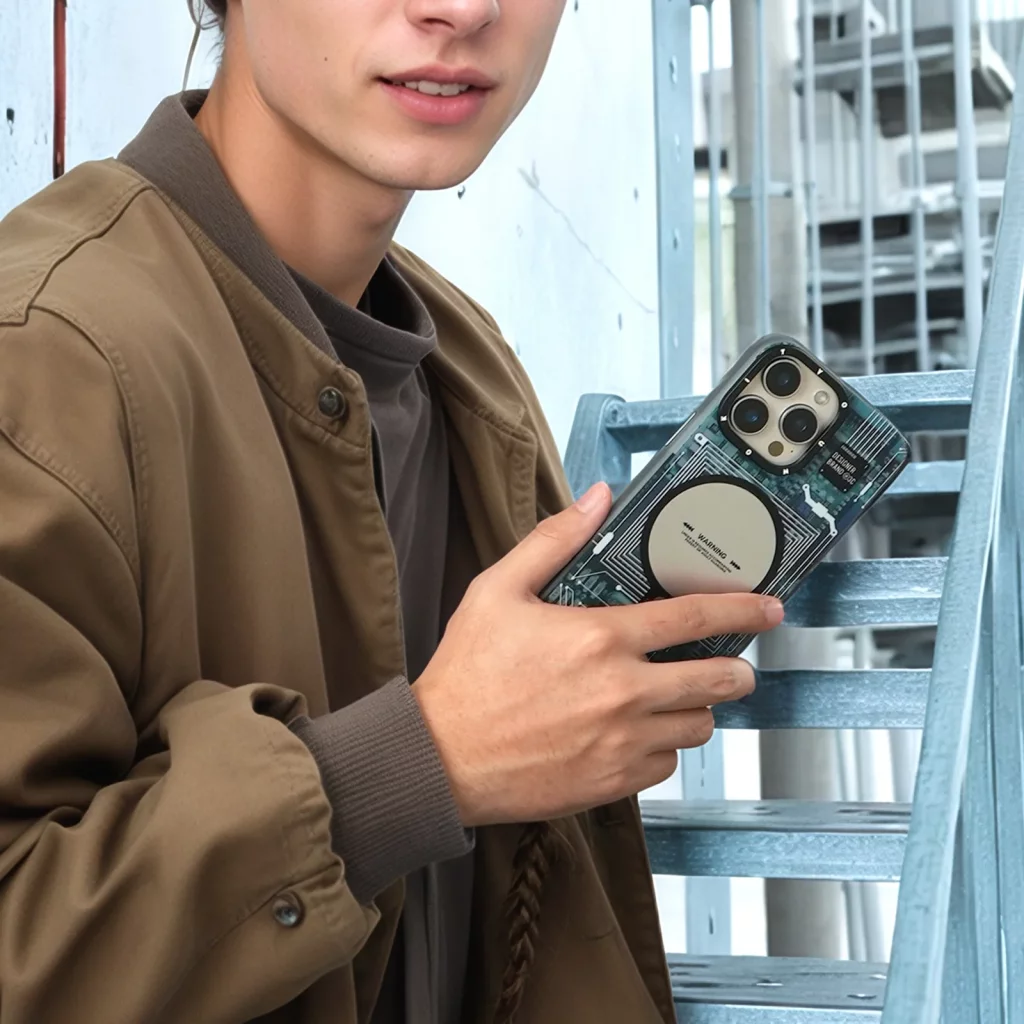 YOUNGKIT Technology Series Futuristic Blue Circuit Board Magsafe Case for iPhone 13/14 Original