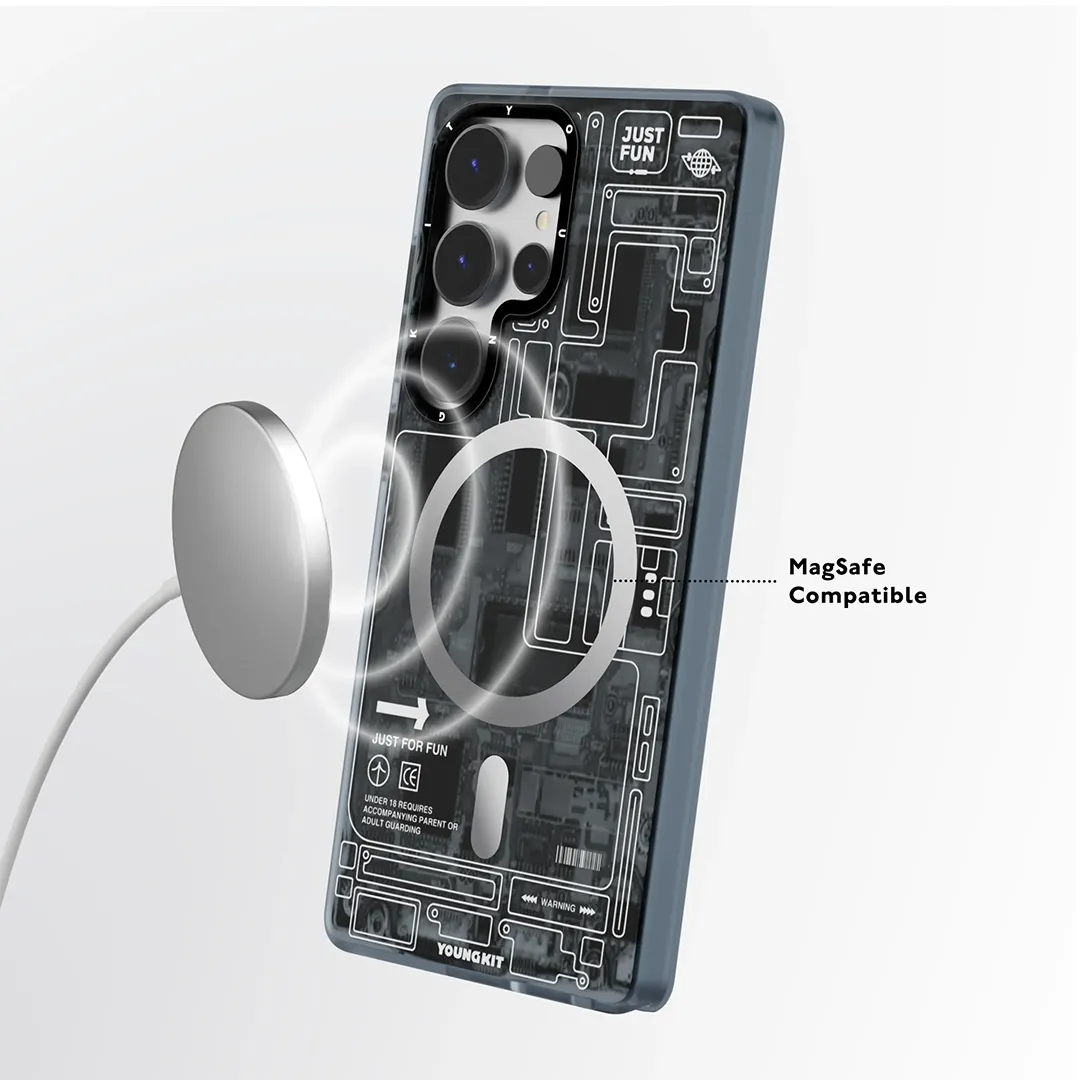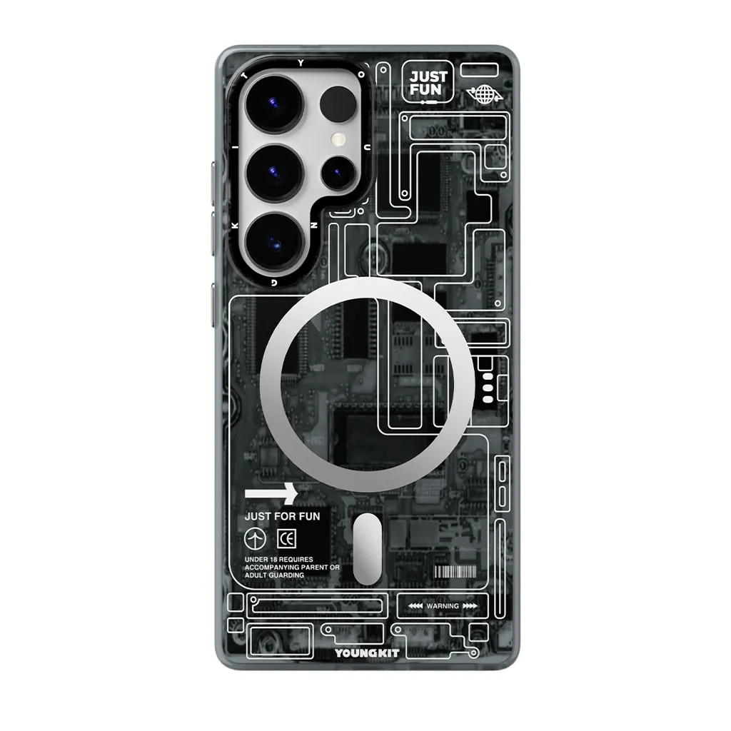 YOUNGKIT Technology Series Futuristic Grey Circuit Board Magsafe Case For Samsung S25 Ultra Original